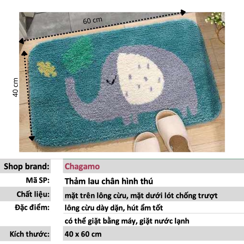 Thảm lau chân hình thú, thảm chùi chân 3d 40x60 nhiều màu lựa chọn.Thảm lau chân lông cừu dày dặn, hút ẩm tốt thích hợp lau qua chân hoặc làm: thảm trang trí, thảm chùi chân cửa phòng khách, phòng bếp, phòng ngủ, phòng tắm (độ thấm nước kém hơn các loại thảm khác 1 chút)