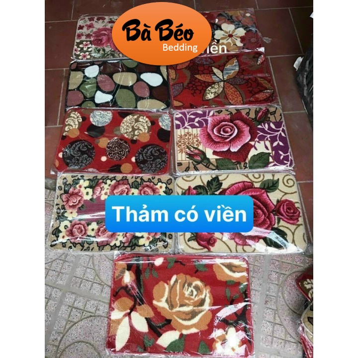 Thảm lau chân hoa văn có viền, thảm chùi chân hoạ tiết hoa 3D siêu thấm, Thảm nỉ lau chân chống trơn trượt cao cấp ( gia