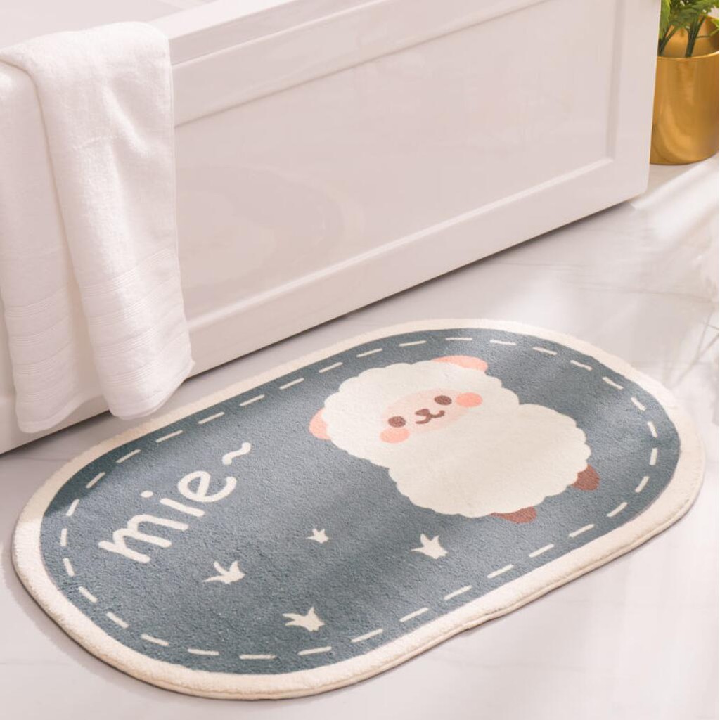 Giới thiệu Thảm Lau Chân Len Cừu Hoạt Hình Bầu Dục Trải Chân Giường