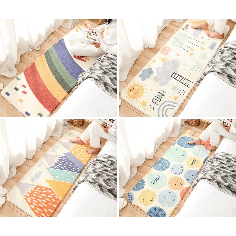 Với hình dáng dài, bạn có thể dễ dàng trang trí mọi không gian: trong phòng ngủ, phòng sách, lót dưới chân ghế sofa, hay kể cả bạn có thể lót ở bồn tắm mà vẫn rất tiện nghi. Thảm hình những nhân vật vô cùng dễ thương, các bé chắc chắn sẽ rất thích thú.