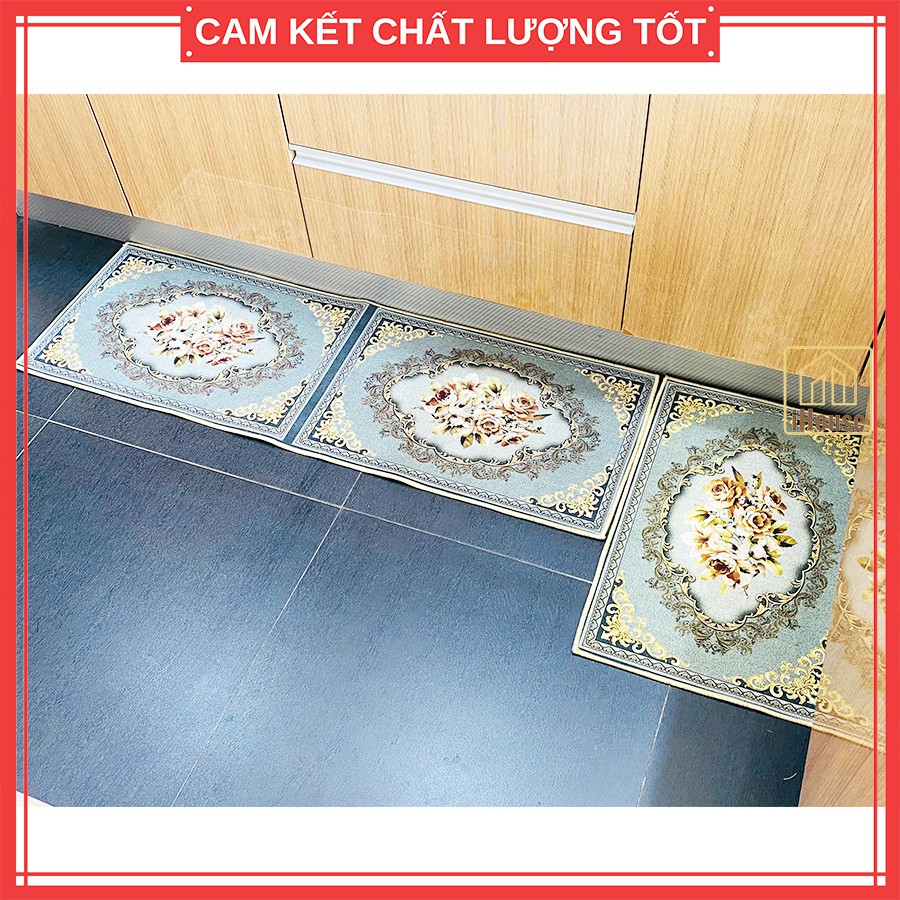 Bộ thảm lau chân nhà bếp họa tiết Cổ Điển màu xám, thảm nhà bếp dài trang trí bền đẹp (gồm 2 miếng)