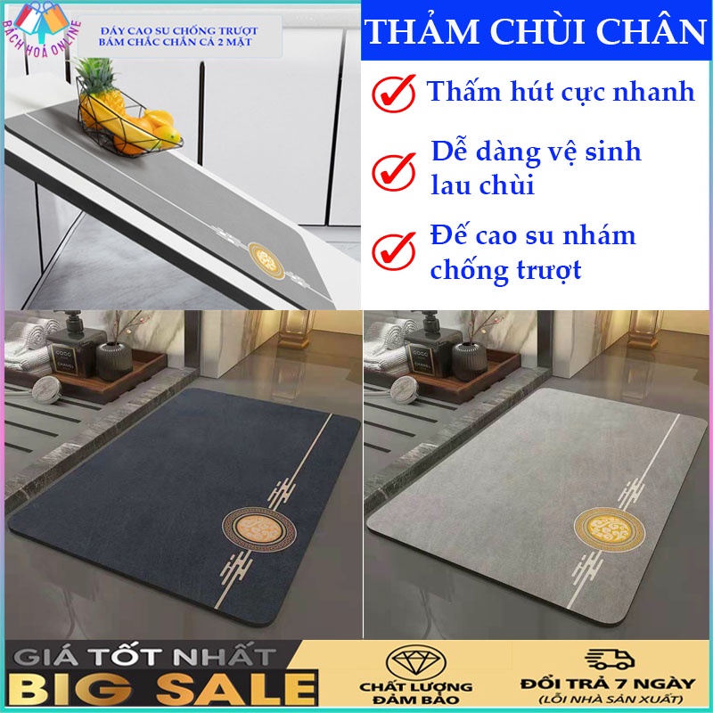 Thảm lau chân nhà tắm chống trơn trượt - Thảm chùi chân siêu thấm hút nước Cao cấp, Sang trọng (Chọn Màu)