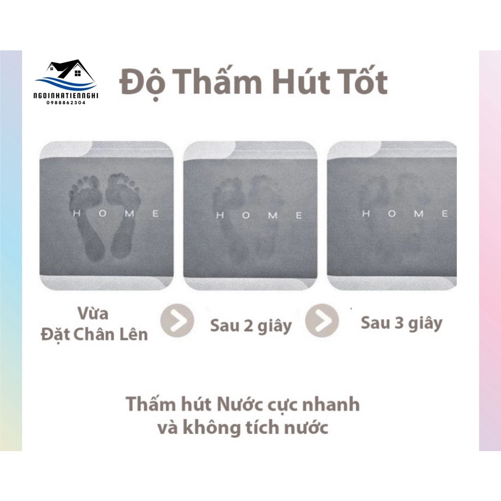 - Không trơn trượt, an toàn cho người già và trẻ nhỏ. Vật liệu Diatomite với những lỗ siêu nhỏ có khả năng tự thấm, hút ẩm siêu nhanh và ngay lập tức giải phóng lượng ẩm này vào không khí.