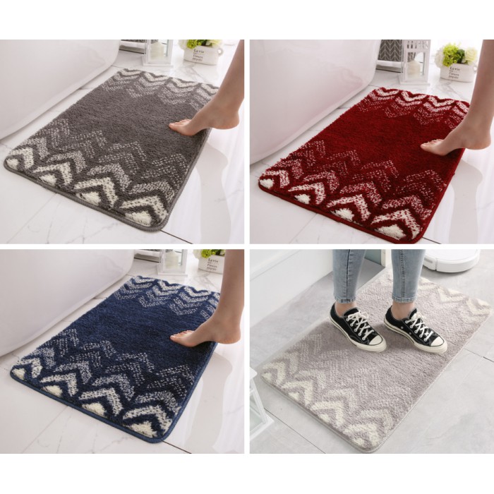 Thảm Lau Chân Nhà Tắm Sợi Len Đế Cao Su Phối Màu Sọc 2 Bên