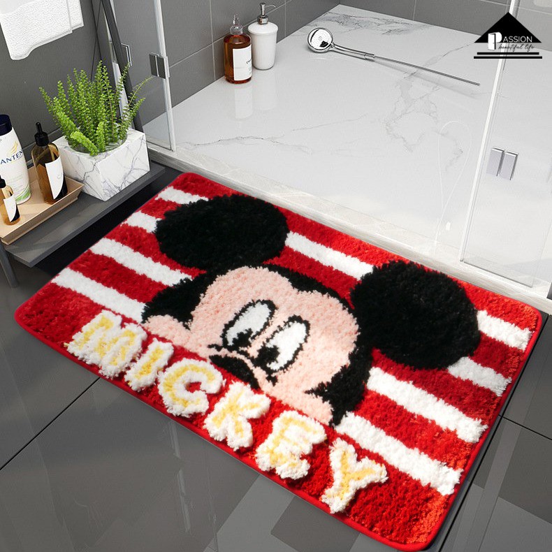 Thảm Lau Chân Siêu Thấm Sợi Nổi Mickey Flocking Chống Trượt