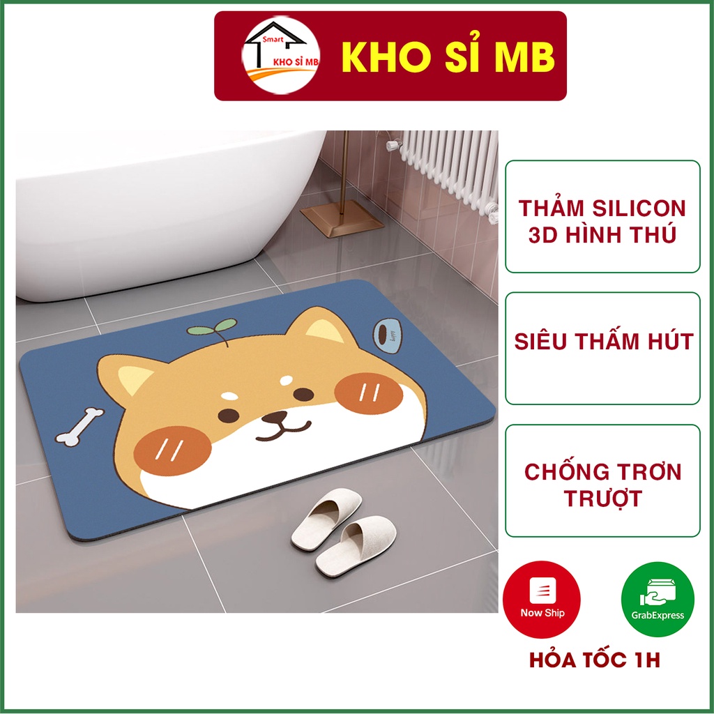 thảm lau chân silicon siêu thấm hút, thảm chùi chân 3d hình thú cho nhà bếp nhà tắm kho sỉ mb