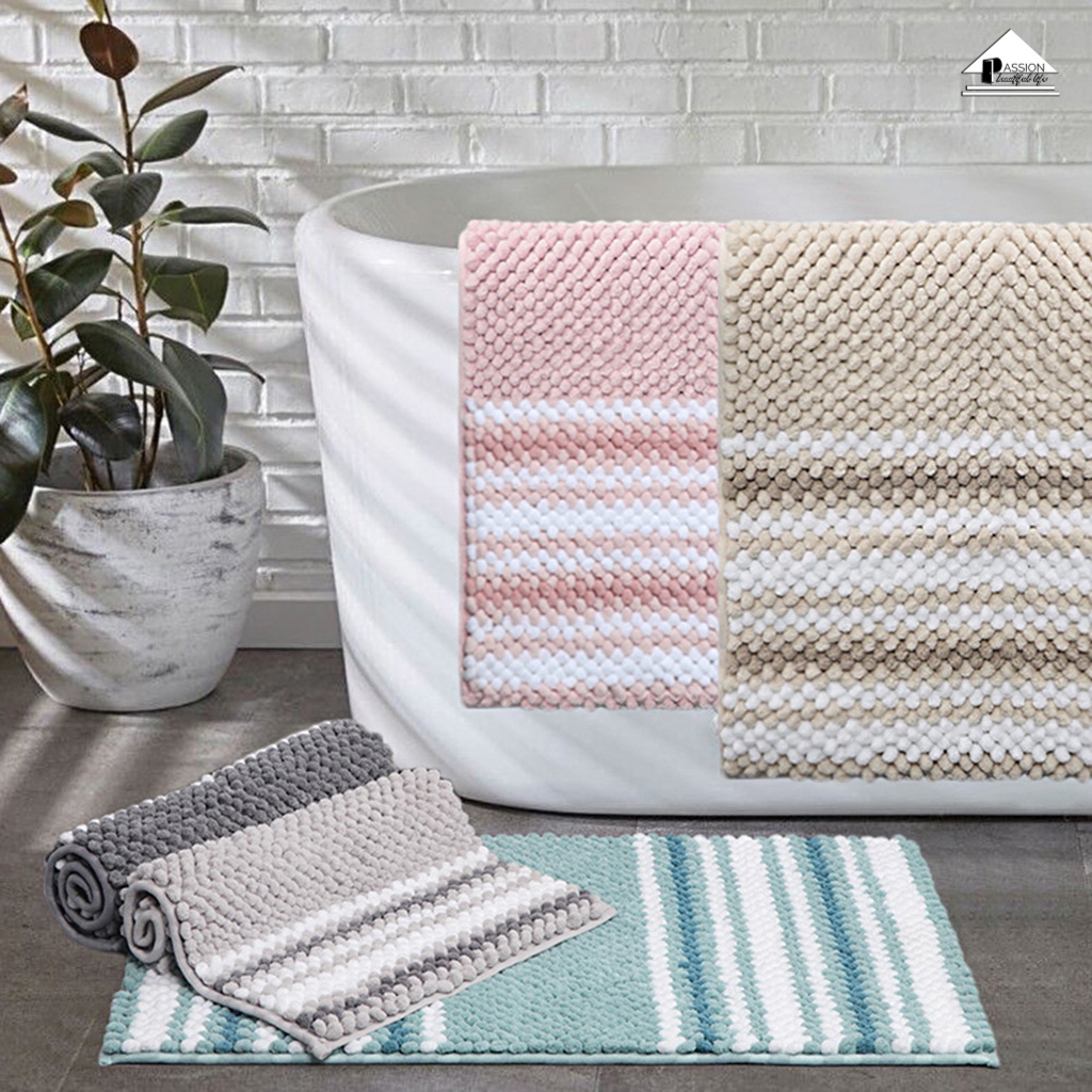Giới thiệu Thảm Lau Chân Sợi Nhung Sọc Chống Trượt Nhà Tắm