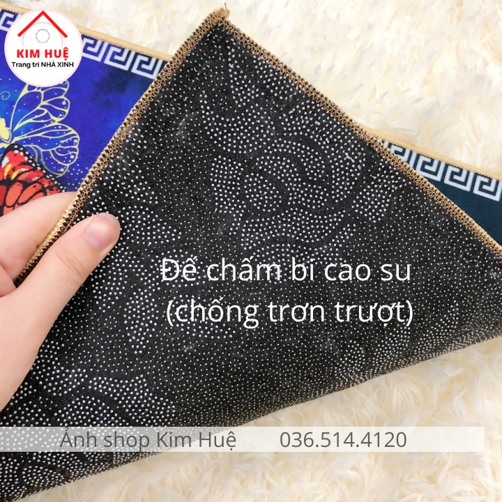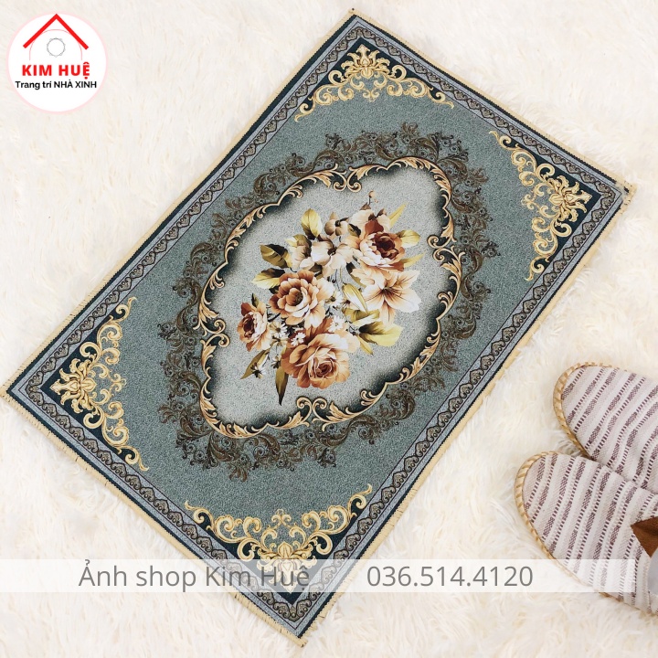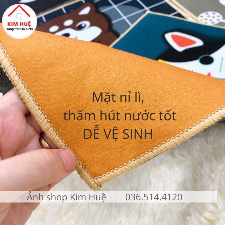 - Chất liệu: bề mặt thảm bằng sợi thô, mặt đáy bằng chất liệu cao su sần tăng ma sát chống trơn trượt.