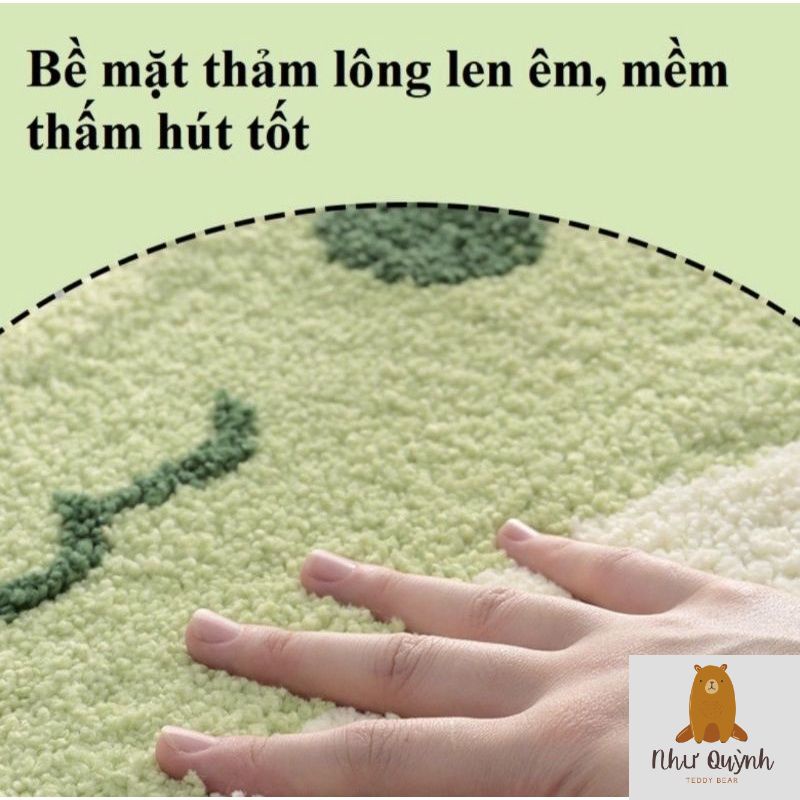 * Chất liệu: thảm chùi chân có mặt trên là lớp vải len dày, êm, mềm mịn có khả năng thấm hút nước khá tốt