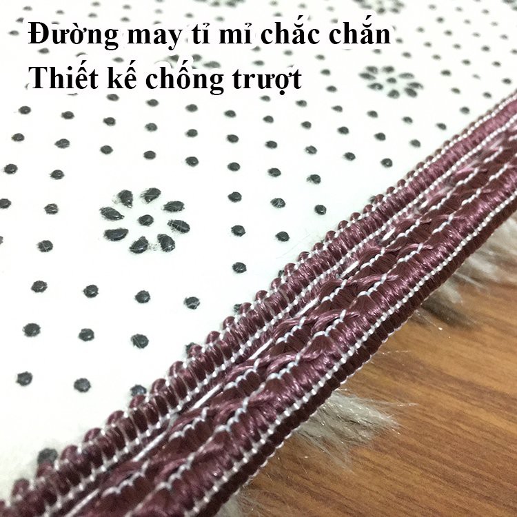 Được thiết kế thông minh với 2 lớp, lớp trên bằng lông siêu mềm mịn, không xổ lông, không gây dính bết khi bị bẩn giống các loại thảm khác, dễ dàng vệ sinh, giặt nhanh khô, lớp dưới bằng các hạt chống trượt đảm bảo khi sử dụng không bị trơn trượt.Thích hợp sử dụng cho không gian phòng khách, phòng ngủ, phòng bếp...