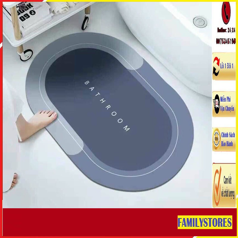 Chất liệu hóa thạch Diatomite, siêu thấm, chân khô ngay sau 2 cú chạm Kháng khuẩn, không nấm mốc như các thảm thông thường, Không cần giặt, ko cần phơi, vệ sinh cực dễ.
