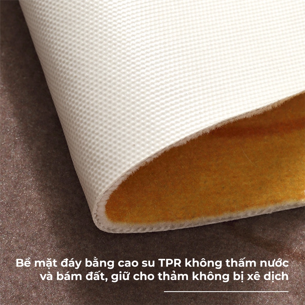 - Bề mặt đáy bằng TPR không thấm nước và bám đất, giữ cho thảm không bị xê dịch.