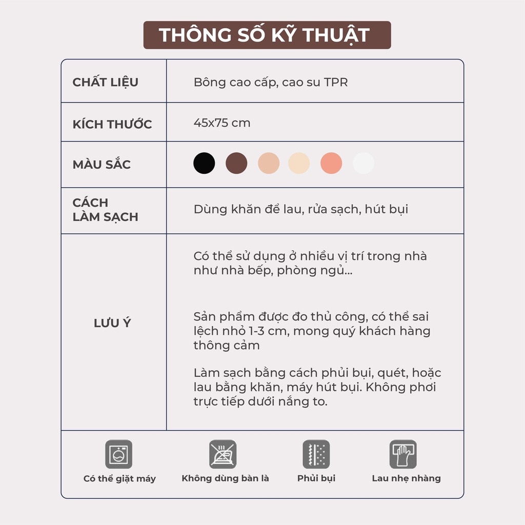 - Kích thước: 45 x 75 cm