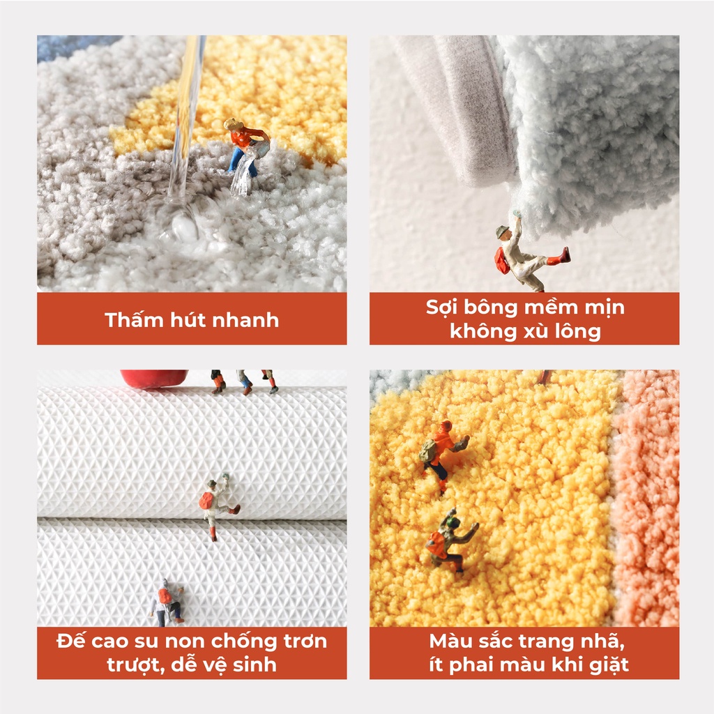 - Đa dạng công năng sử dụng: Thảm chùi chân, thảm lau, thảm nhà tắm, phòng ngủ, thảm phòng bếp, thảm văn phòng….