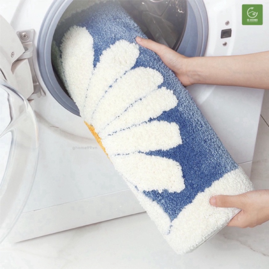 - Thảm có thể giặt bằng máy giặt (lưu ý cho thảm vào trong túi giặt để đảm bảo mặt lông thảm được bền hơn).