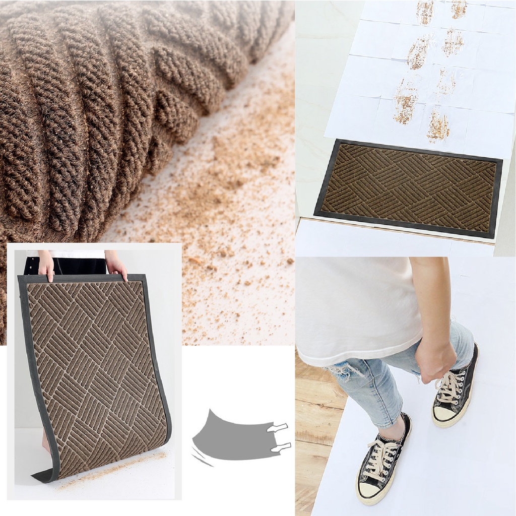 - Bề mặt đáy thảm bằng cao su không thấm nước và bám đất, giữ cho thảm không bị xê dịch