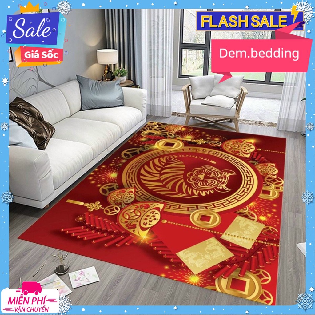 Thảm Lì Bali 3D Tết 2022 Họa Tiết sắc đỏ trải phòng khách[1m6x2m3]mẫu thỏi vàng