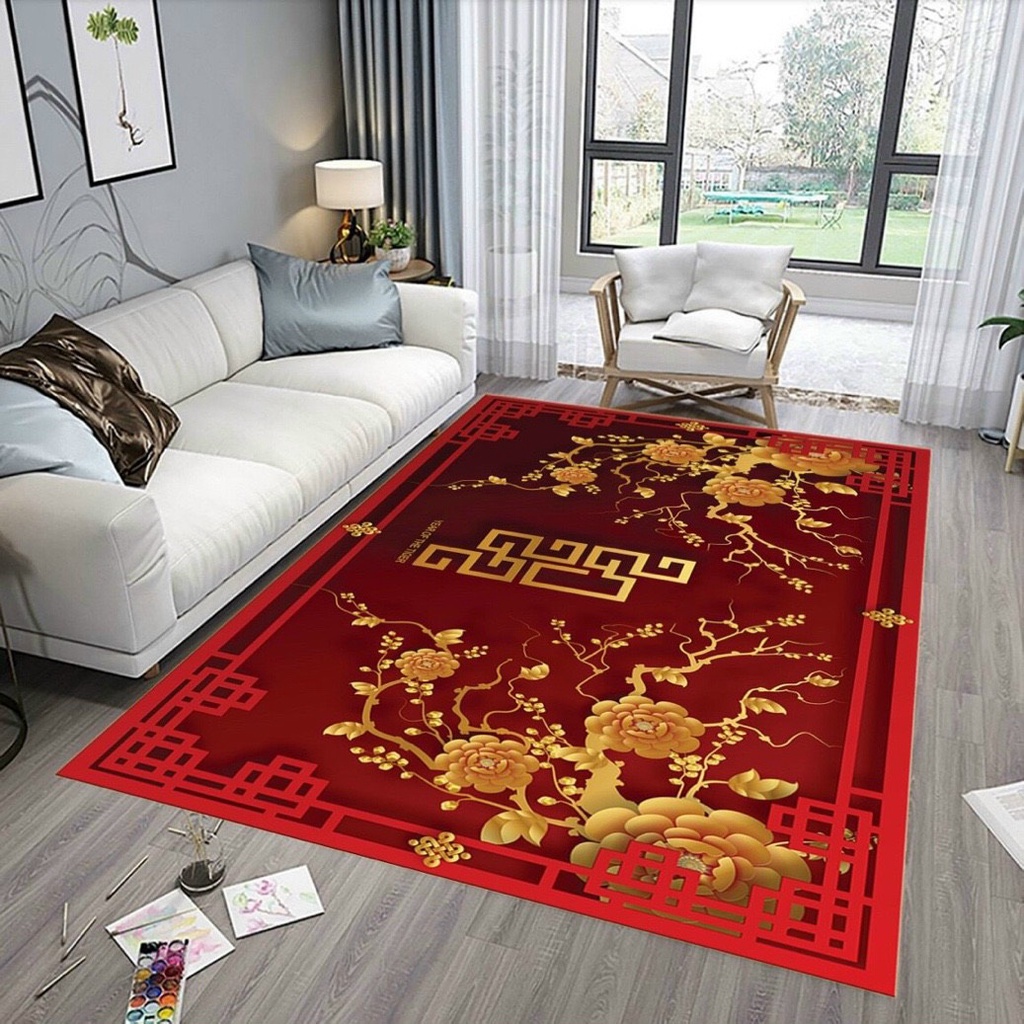 Nhà cửa & Đời sống > Trang trí nhà cửa > Thảm trải sàn || Thảm Lì Bali 3D Tết 2022 Họa Tiết sắc đỏ trải phòng khách[1m6x2m3]mẫu hoa đàoCòn hàng