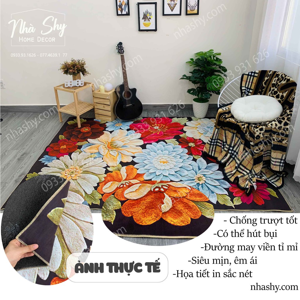 Giới thiệu Thảm Lì Bali In Họa Tiết 5D Hoa Văn Cổ Điển - Thảm Trải Sàn size 2m3x1m6