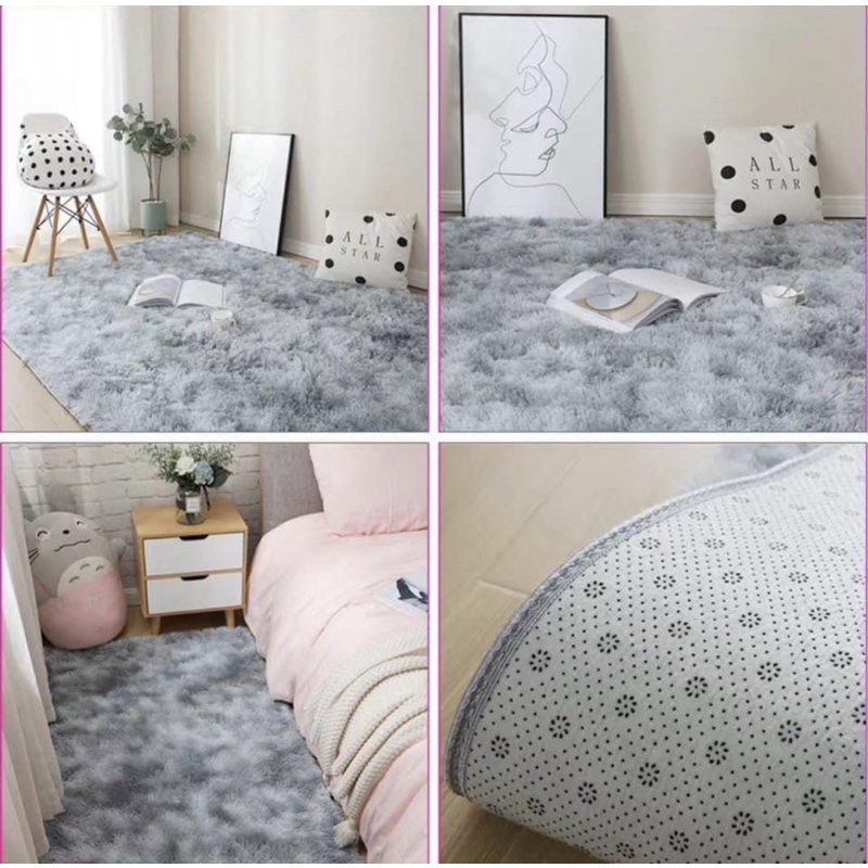 Giới thiệu Thảm lông 1m6x2m màu xám khói thảm decor trang trí trải phòng ngủ phòng khách chụp mẫu sản phẩm thảm dày lông mịn mượt