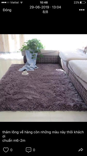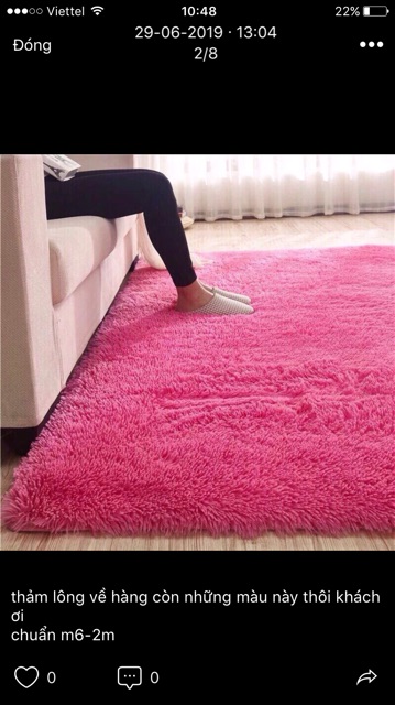 Thảm lông cao cấp được nhập khẩu . Với màu sắc trang nhã. Bề mặt lông mền mịn. Không bị rụng lông. Phù hợp cho mọi không gian sang trọng và tiện lợi .Giá XIN