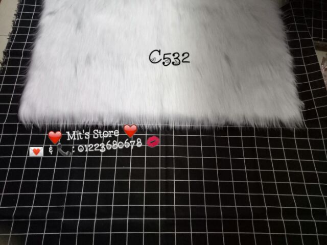 C532: Thảm lông trắng dài 50cmx80cm + Vải bố Caro đen 1mx1m5