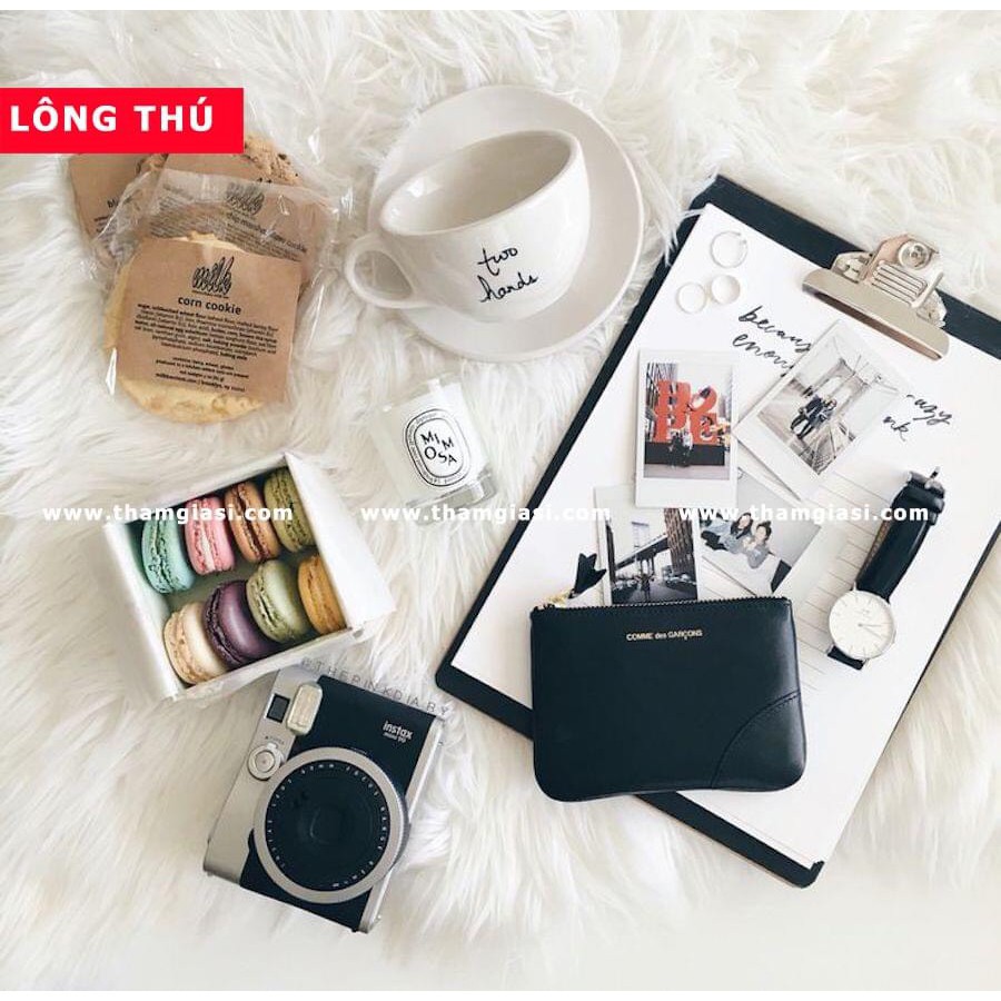 Thảm lông chụp ảnh màu trắng , thảm lông trang trí ( lông dài hồ ly ) [ nhiều size ]