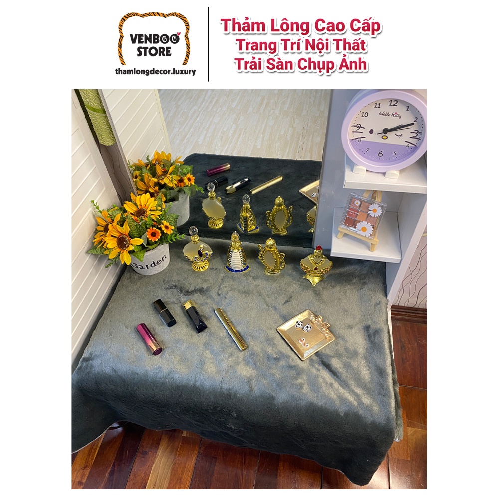 Giới thiệu Thảm Lông Trải Bàn Trang Điểm Decor Bàn Học | Thảm Lông Chụp Ảnh Sản Phẩm | Xám Totoro LM