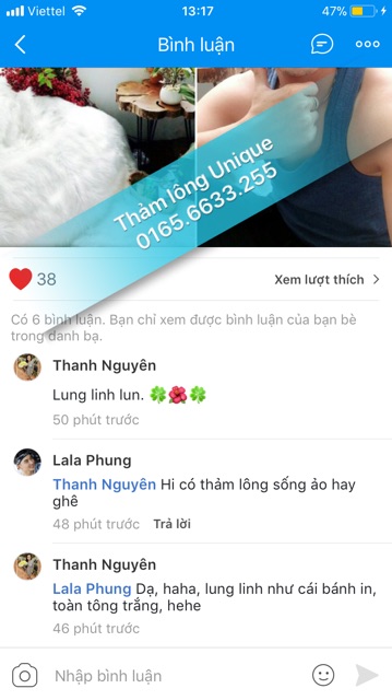 " Nơi này tui ngồi tư vấn, Chat chít với các bạn mỗi ngày nè "" CÓ THẢM LÔNG SỐNG ẢO HAY GHÊ "