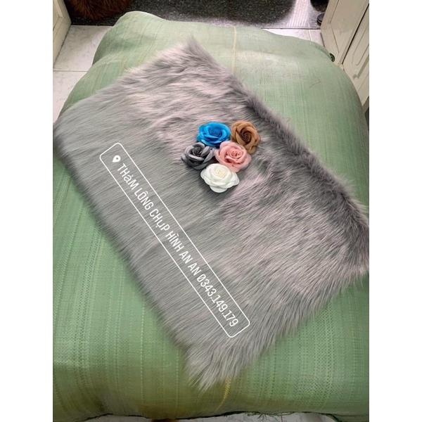 THẢM LÔNG CHỤP HÌNH - THẢM LÔNG TRẢI BÀN TRANG ĐIỂM MÀU XÁM TRO LÔNG DÀI