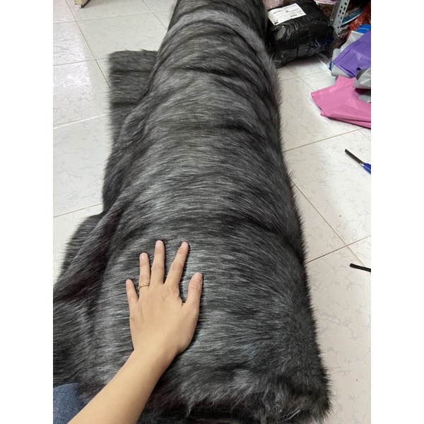 Thảm lông chụp hình - trải bàn trang điểm - màu xám sọc đen