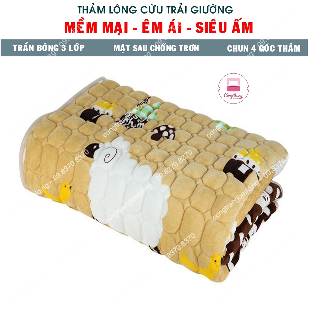 Thảm lông cừu trải giường, thảm nỉ nhung trải giường 3 lớp - siêu mềm, siêu ấm - Đủ Các Kích Thước