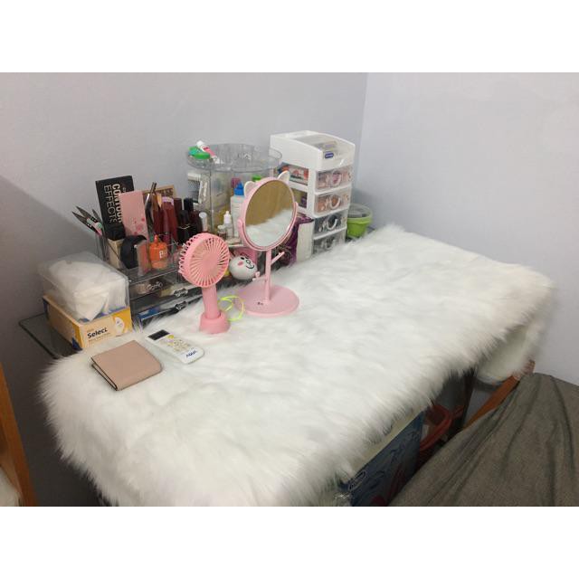 Thảm lông dài màu trắng tinh và trắng ngà lót chụp ảnh sản phẩm, bàn trang điểm xinh xắn😍Ngoài ra shop còn nhiều màu khác nữa nhé cả nhà🍓