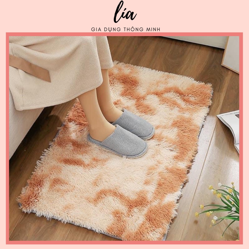 Thảm lông loang kích thước 40x60cm có gai chống trượt, vừa trang trí, chùi chân, hoặc làm nền chụp ảnh đa năng. Thảm lau khô, độ thấm nước ít.- Thảm 2 lớp: mặt trên lông mềm mại, mặt dưới lót chống trượt