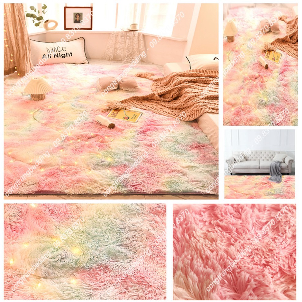 Giới thiệu Thảm lông loang màu cầu vồng Lót Sàn Phòng Ngủ, Phòng Khách - (Mặt Sau Chồng trơn trượt) M1