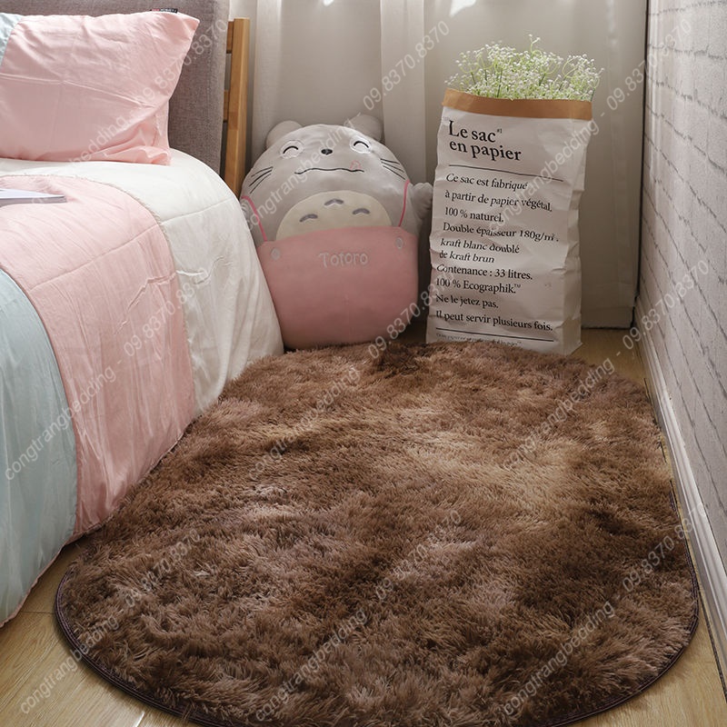 Thảm lông loang oval trải sàn, lót Sàn Phòng Ngủ, Phòng Khách - (Mặt Sau Chồng trơn trượt) - ovan