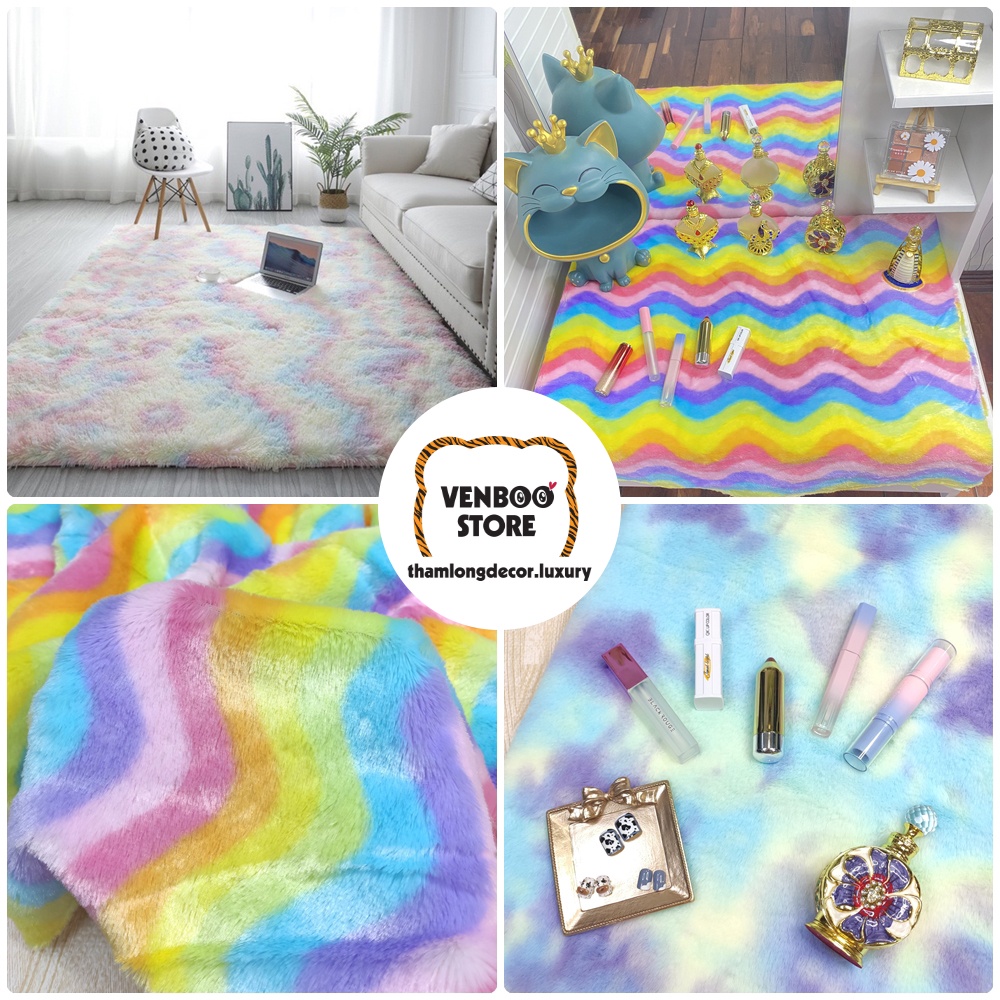 Giới thiệu Thảm Lông Loang Trải Sàn Decor Phòng Ngủ | Vải Decor Chụp Ảnh | Khăn Trải Bàn | Màu Cầu Vòng 7 Sắc