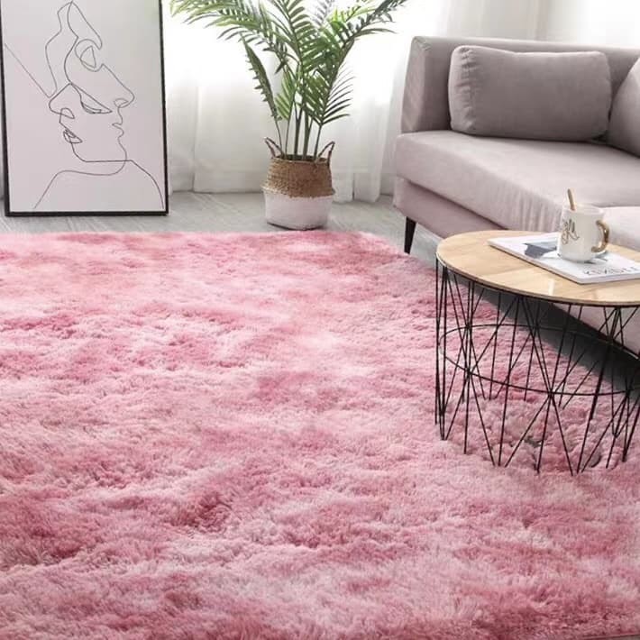 Thảm lông màu loang trải trang trí phòng cực kì sang và sạch sẽ. Thảm có 1 mặt lông, 1 mặt chống trượt.