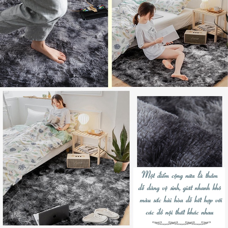 Giới thiệu Thảm Lông Loang Trải Sàn HOMIES Trang Trí Lông Dầy cao cấp ( Kích Thước 1m6 x 2m) - Mặt Sau Chồng trơn trượt