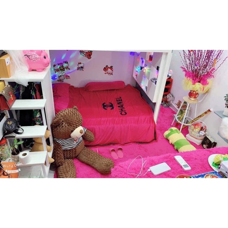 Thảm lông trải sàn, lót phòng- Màu Hồng Đậm, lông êm mịn.
