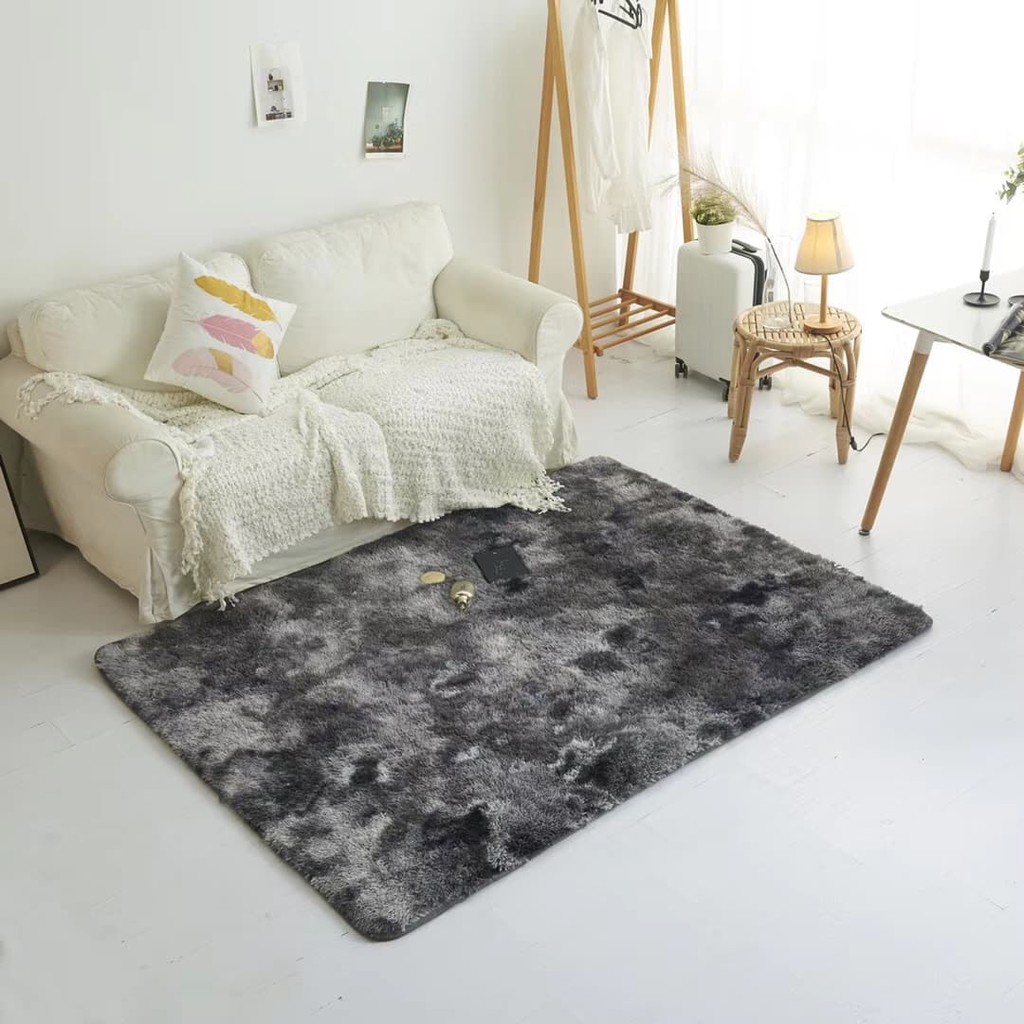 Thảm lông màu loang trải trang trí phòng cực kì sang và sạch sẽ. Thảm có 1 mặt lông, 1 mặt chống trượt.