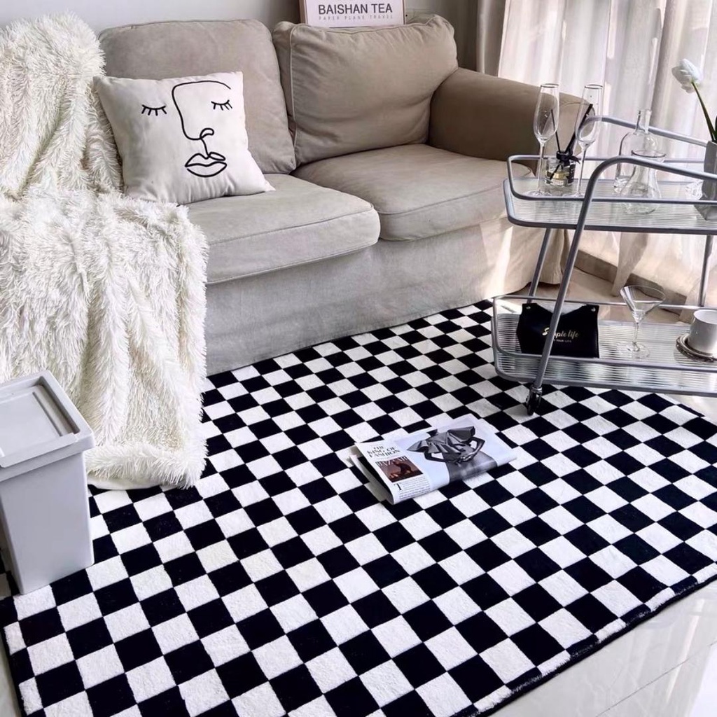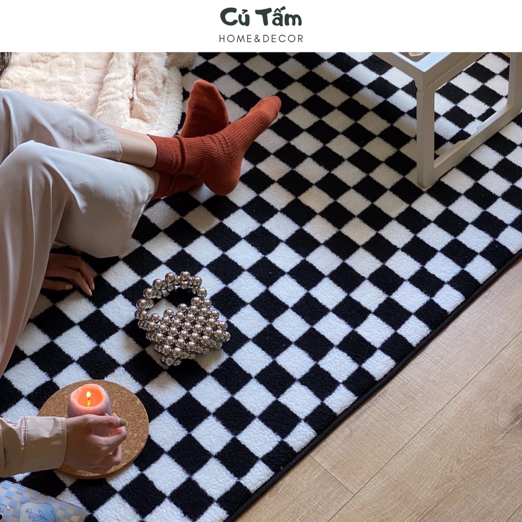 Nhà cửa & Đời sống > Trang trí nhà cửa > Thảm trải sàn || Thảm lông nhân tạo trải sàn họa tiết ô cờ cao cấp, thảm trang trí phòng khách, phòng ngủ - cutam.homedecorCòn hàng