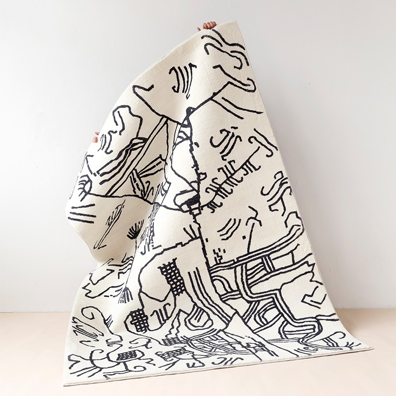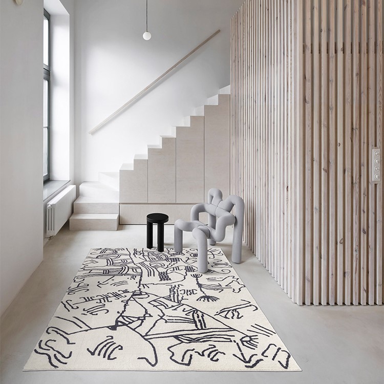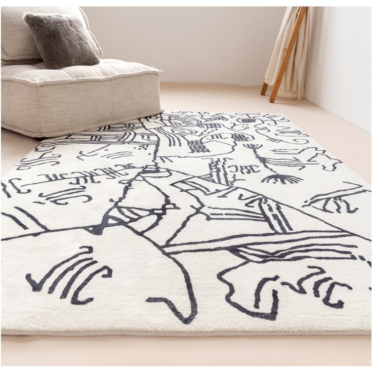 Nhà cửa & Đời sống > Trang trí nhà cửa > Thảm trải sàn || Thảm Lông Sợi Ngắn Alice Họa Tiết Abstract Trắng ĐenCòn hàng