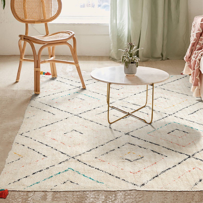 Thảm Lông Sợi Ngắn Alice Khối Vuông Họa Tiết Sọc Màu sở hữu thiết kế đậm chất Boho với họa tiết khối hình thoi cùng chi tiết tua rua tại 4 góc Thảm, những đặc điểm đặc trưng của phong cách Bohemian. Ngoài ra, Thảm Alice còn được thổi hồn với những màu sắc nổi bật nhưng không quá "lóa mắt". Bởi sự sặc sỡ đó đã được trung hòa bởi gam Beige chủ đạo, đem lại cho item sự tinh tế.