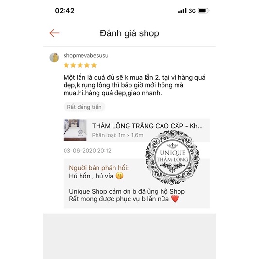 Thảm lông thú trắng lúc nào cũng ko khỏi nhận được Feedback cứ xuýt xoa khen vì quá ưng khi nhận được hàng.Hàng quá đẹp xứng đáng về tay các chủ nhân Xênh đẹp nè 💁💁💁