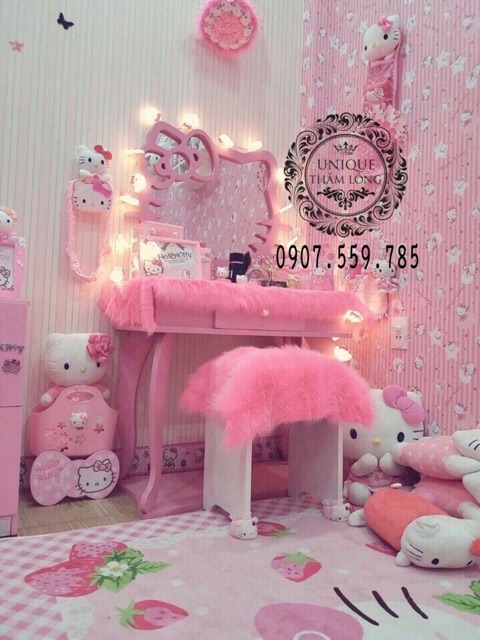 Wow 😲😲😲 woWTa nói chị khách đầu tư cho con gái iu 1 cái bàn Trang điểm xinh " lồng lộn " lun. Ai tín đồ của màu " Hường " và Kitty thì bơi hết vào đây nào 🌸🌸🌸