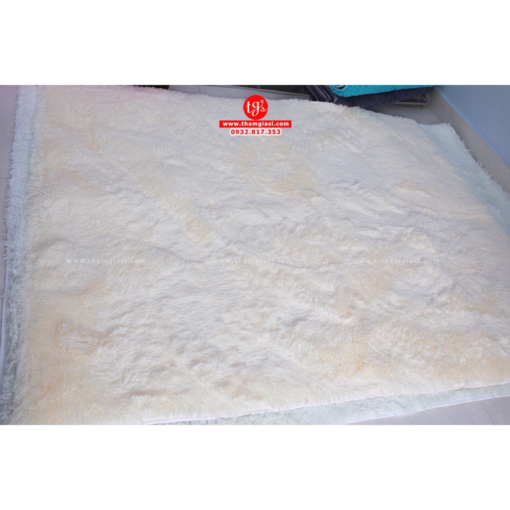 Thảm Lông Trải Sàn Phòng Khách Lông Xù Trắng Sữa 160x200