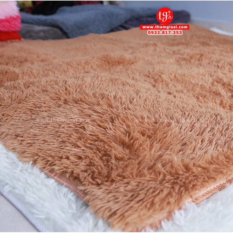 Giới thiệu Thảm Lông Trải sàn Phòng Ngủ Lông Xù Khaki 100x160