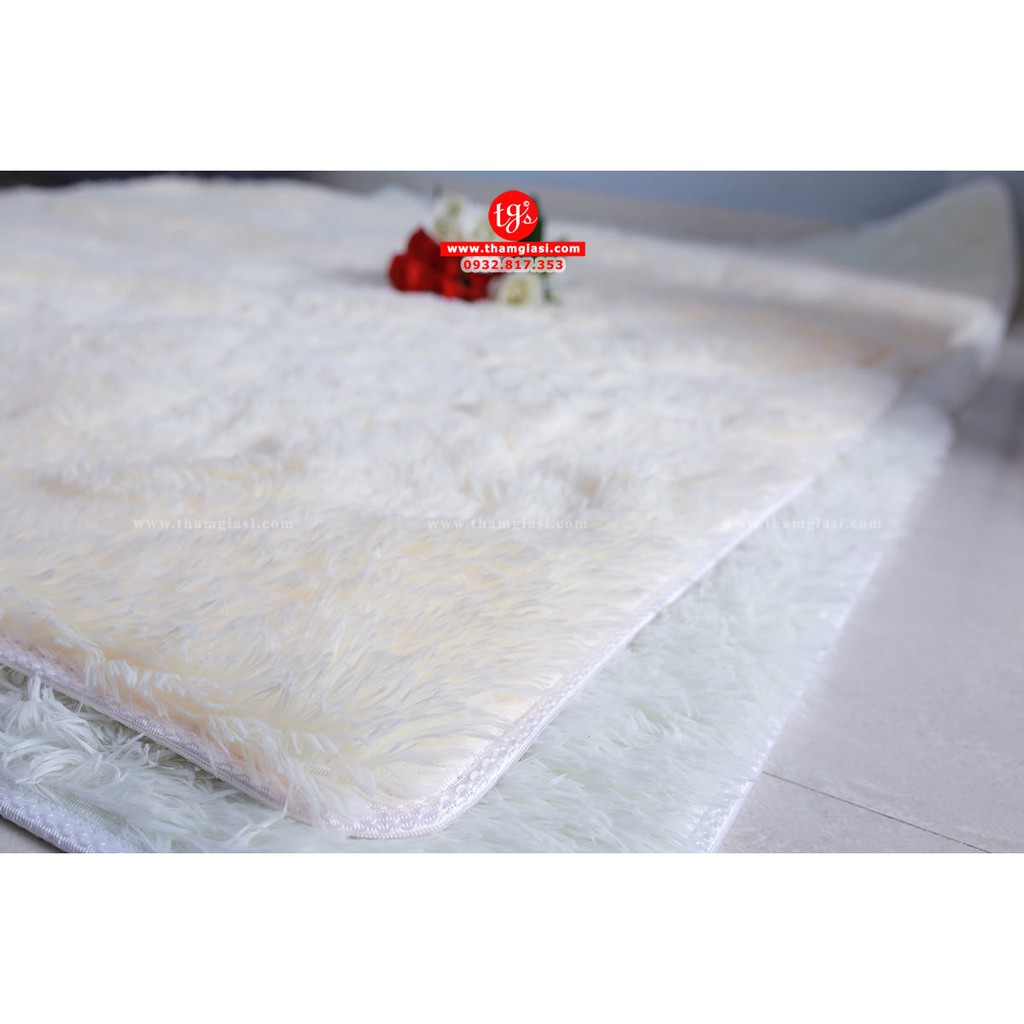 Thảm Lông Trải Sàn Phòng Ngủ Lông Xù Trắng Sữa 100x160