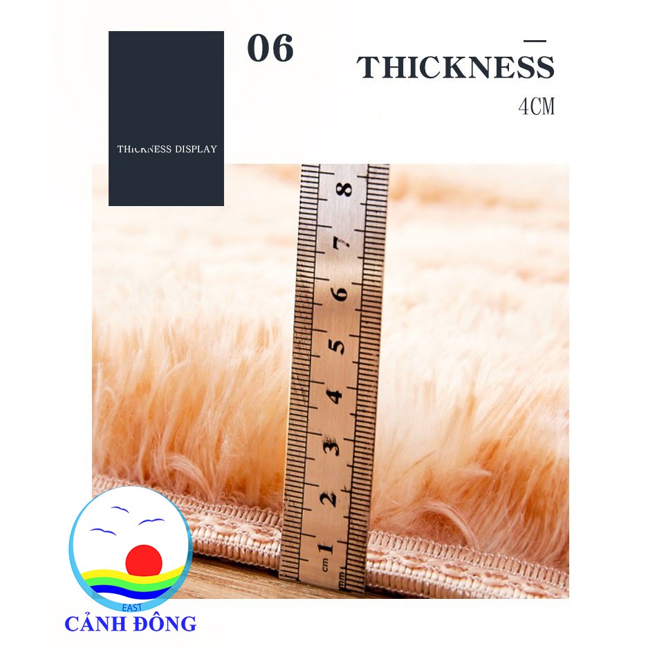 • Với chất liệu polyester cao cấp, kết cấu bo viền chắc chắn, sợi lông mềm mịn, tạo cảm giác êm ái, dễ chịu, dễ dàng vệ sinh, giặt rất nhanh khô. Mặt lông dày 4cm với các sợi lông kết dính bền chặt tạo cảm giác chắc chắn, không bị rụng lông. Mặt dưới thiết kế các hạt chống trượt, an toàn khi sử dụng cho em bé hoặc người già. Tuy là thảm lông nhưng phù hợp cho cả 4 mùa, bởi thảm có độ dày vừa phải, kết hợp với độ thoát nhiệt tốt nên có thể xua tan nỗi lo nóng bức trong mùa hè của khách hàng.